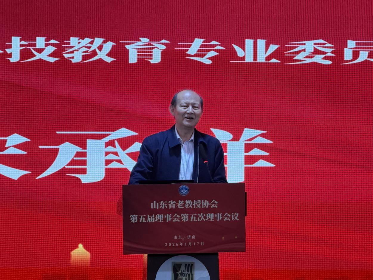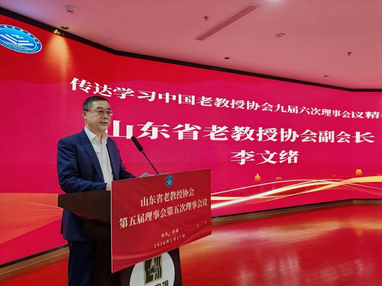2026年117日上午,山东省老教授协会第五届理事会第五次理事会议在济南隆重举行。山东省老教授协会会长赵彦修、执行会长毛有高、顾问宋承祥以及70余位理事、理事授权代表和监事出席了会议。协会会员单位、分支机构负责人和嘉宾80余人列席了会议。会议由会长赵彦修主持。